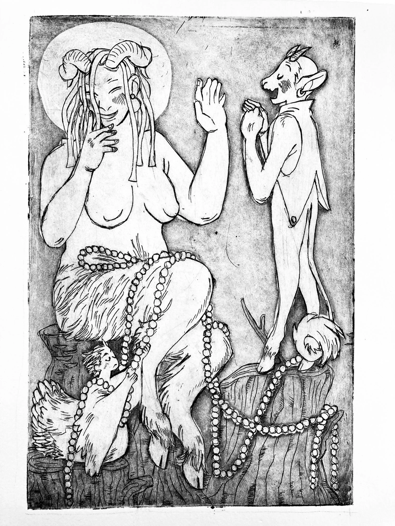 "She Came Down On A Golden Boar" Intaglio, Aquatint 2023